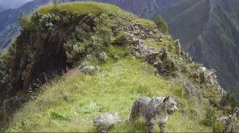 青海玉樹紅外相機捕捉到三只雪豹“同框”