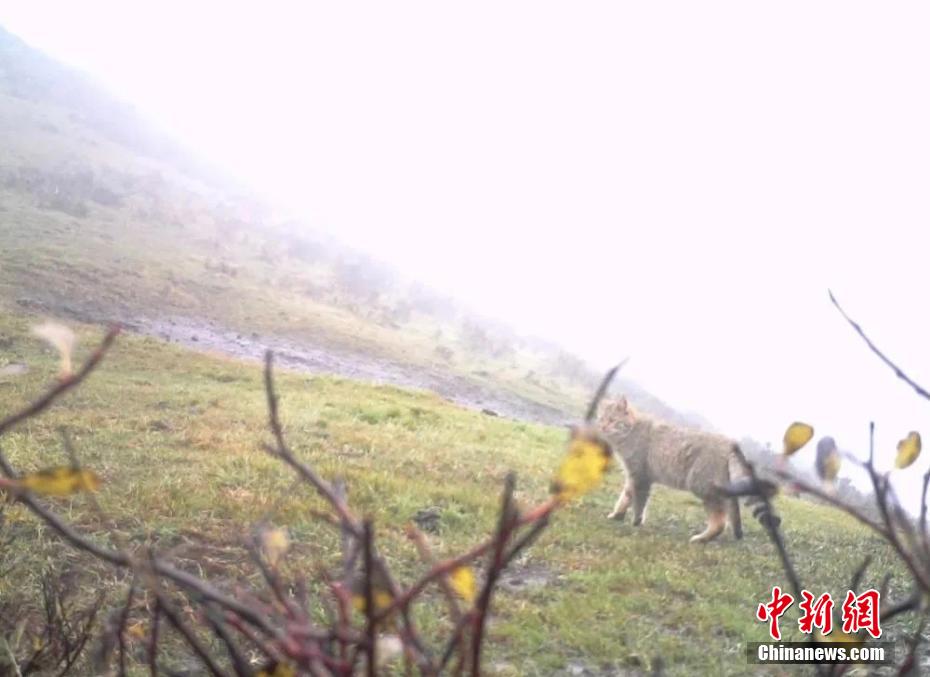 圖為紅外相機在大通北川河源區國家級自然保護區東峽區域拍攝到的荒漠貓。 大通北川河源區國家級自然保護區管理局供圖