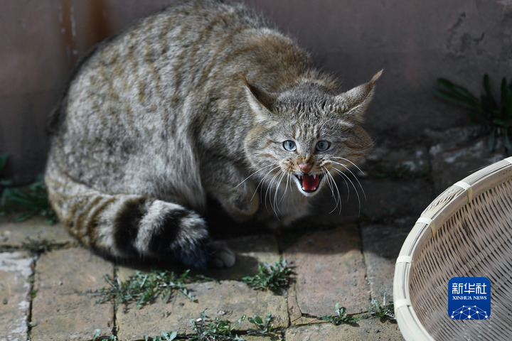 這是2021年5月1日在西寧野生動物園拍攝的一只人工救助的荒漠貓。新華社記者 張龍 攝