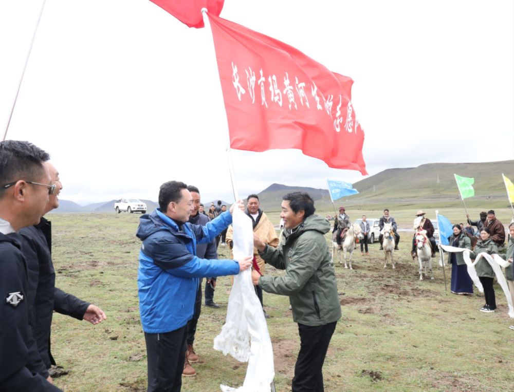 8月5日,在平均海拔超過4500米的長沙貢瑪濕地核心腹地,甘孜州委主要領導一行工作率隊來到黃河入川第一縣石渠縣,深入黃河上游重要水源涵養地和重要支流熱曲、查曲等河流發源地—長沙貢瑪國際重要濕地,看望慰問邊遠牧民群眾,調研石渠縣黃河流域生態保護和高質量發展工作,為長期堅守巡護一線的長沙貢瑪黃河生態保護志愿隊授旗。