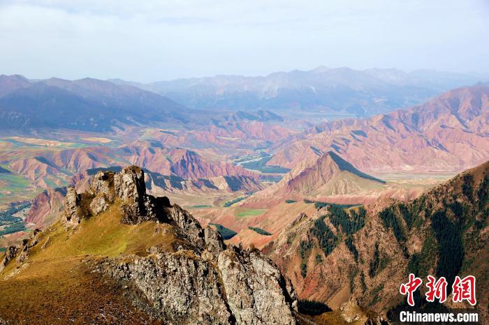 9月14日,在青海省海北藏族自治州祁連縣,記者航拍天境山。天境山位于八寶鎮拉洞村,距祁連縣城約6公里,這里人跡罕至、怪石嶙峋、山泉潺潺、古柏參天,站在觀景臺舉目四望,遠山青翠如黛、羊群似珍珠灑落。