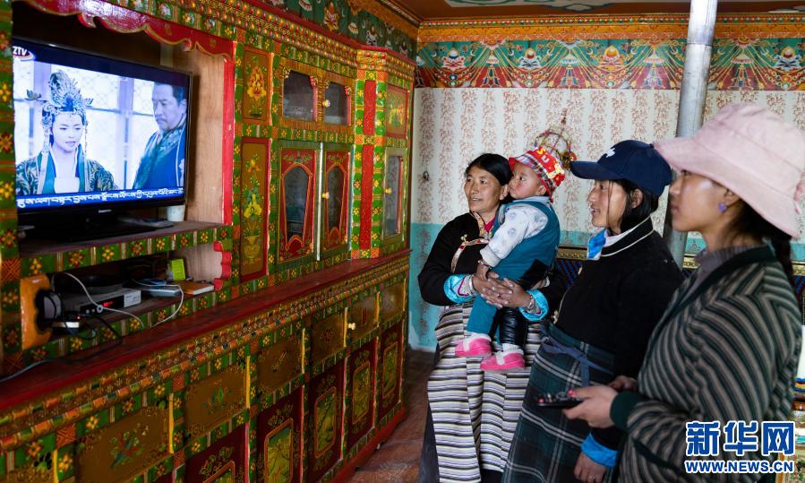 在西藏山南市浪卡子縣普瑪江塘鄉,群眾在家中觀看電視節目(2020年4月15日攝)。新華社記者 普布扎西攝