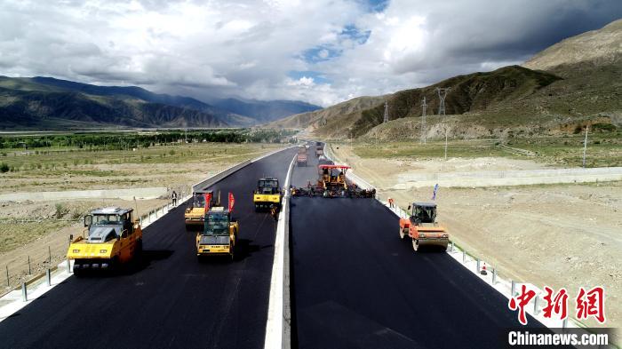 資料圖為建設中的拉薩段高速公路。西藏自治區交通運輸廳供圖