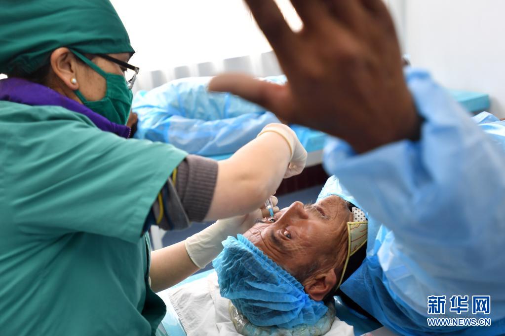 3月25日,78歲的白內(nèi)障患者斯多通過(guò)手術(shù)重見(jiàn)光明。新華社記者 覺(jué)果 攝