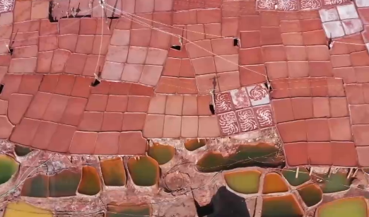 這段時間,瀾滄江邊的桃花開得正旺,春意濃濃。離桃花谷不遠處,就是芒康鹽井古鹽田。每年三四月桃花盛開的季節,鹵水經過陽光與春風的滋養,凝結出一顆顆宛若桃花般的結晶鹽,當地俗稱桃花鹽。這個季節正是鹽產量最高、質量最佳、銷量最好的季節。眼下,村民們正忙著采集桃花鹽。數千塊曬鹽田隨著河谷山勢,呈方格棋盤般整齊排列,層層疊疊,在藍天白云的映襯下,呈現出五彩斑斕的炫目色塊。