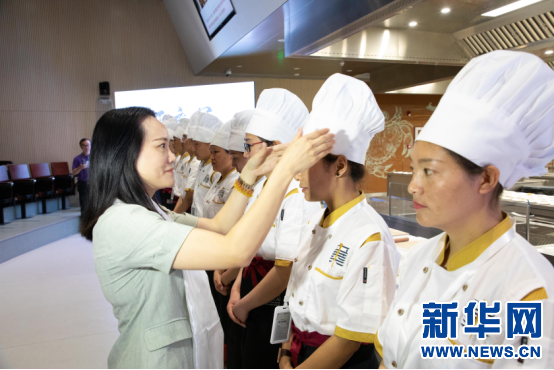 圖為東莞市稻香中菜廚藝職業(yè)培訓學院院長李坤媛與學員(4月2日攝)。新華網(wǎng)發(fā)(林芝市人力資源和社會保障局供圖)