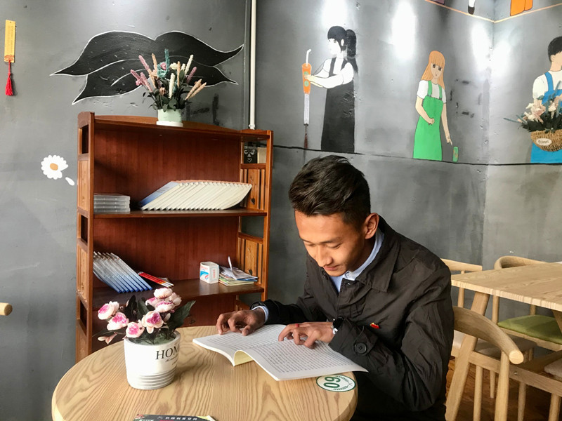 圖為創業者旺久利用閑暇時間看書。尼瑪次仁 攝