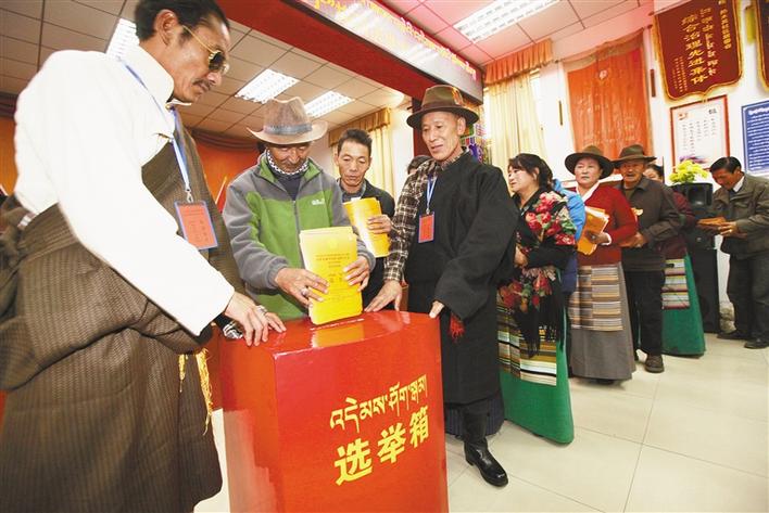 圖為西藏自治區拉薩市熱木其社區居民投票選舉。