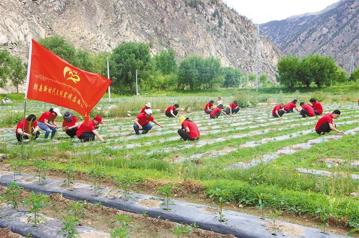 圖為西藏自治區林芝市朗縣新時代文明實踐志愿服務隊來到洞嘎鎮達木村,幫助當地村民干農活。