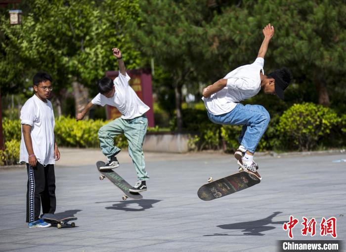 圖為幾位少年在林芝市福建公園內玩滑板。(資料圖) 欒遠春 攝