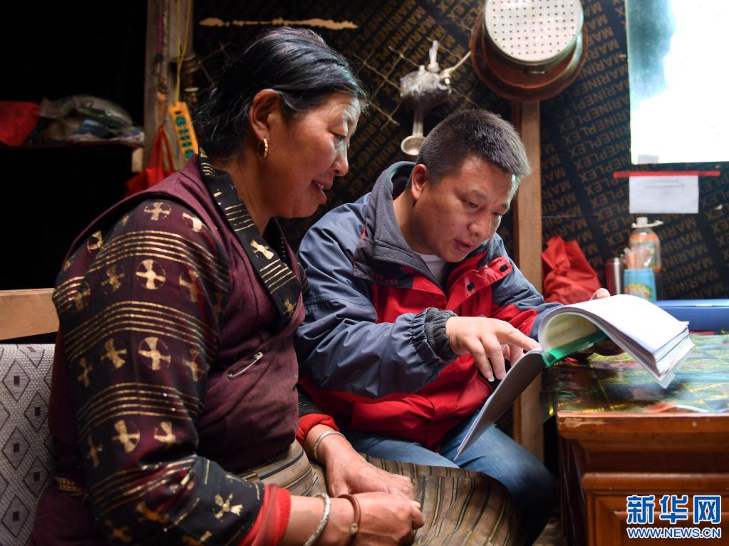 西藏山南市社保工作人員在隆子縣玉麥鄉(xiāng)玉麥村村民央宗家中進(jìn)行社保信息補充登記。新華社記者 晉美多吉 攝