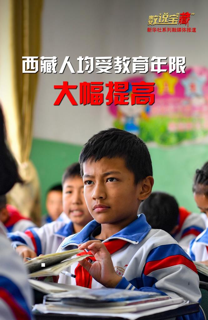 70年間,西藏通過完善現代教育體系、實行15年公費教育等多種舉措,文盲率顯著下降,人均受教育年限得到大幅提高。《西藏和平解放與繁榮發展》白皮書顯示:目前西藏新增勞動力人均受教育年限提高到13.1年。