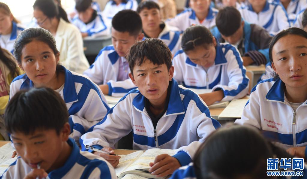 西藏昌都市鹽井中學的學生在上藏文課(2019年6月6日攝)。 新華社記者 晉美多吉 攝