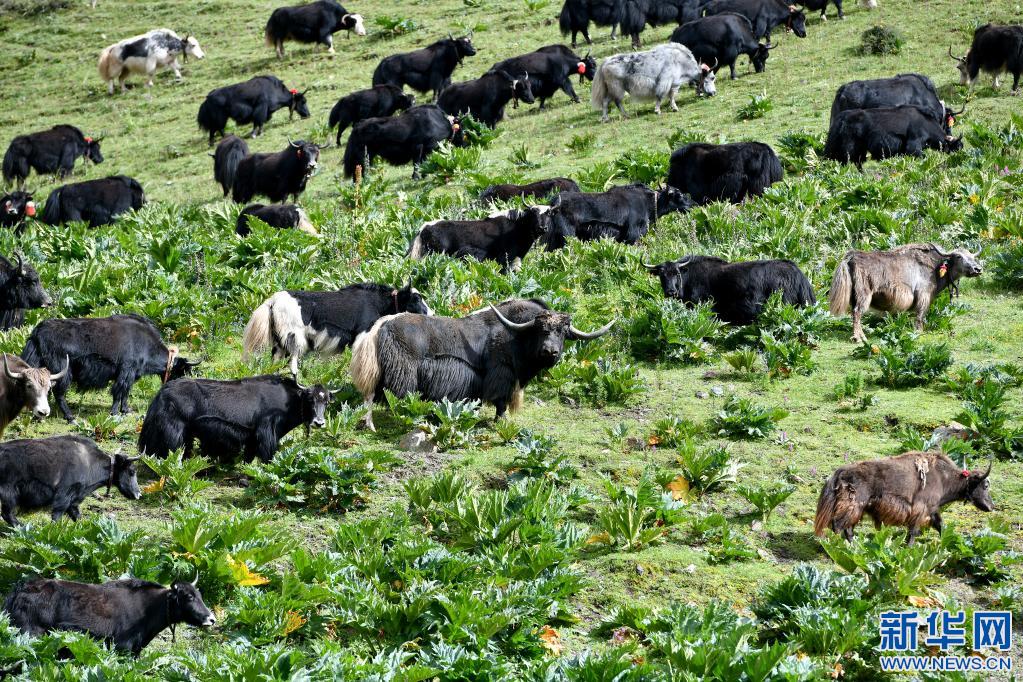 這是7月28日在西藏娘亞牦牛養(yǎng)殖產(chǎn)業(yè)發(fā)展有限責(zé)任公司的牦牛選育基地內(nèi)拍攝的牦牛。新華社記者 李鑫 攝