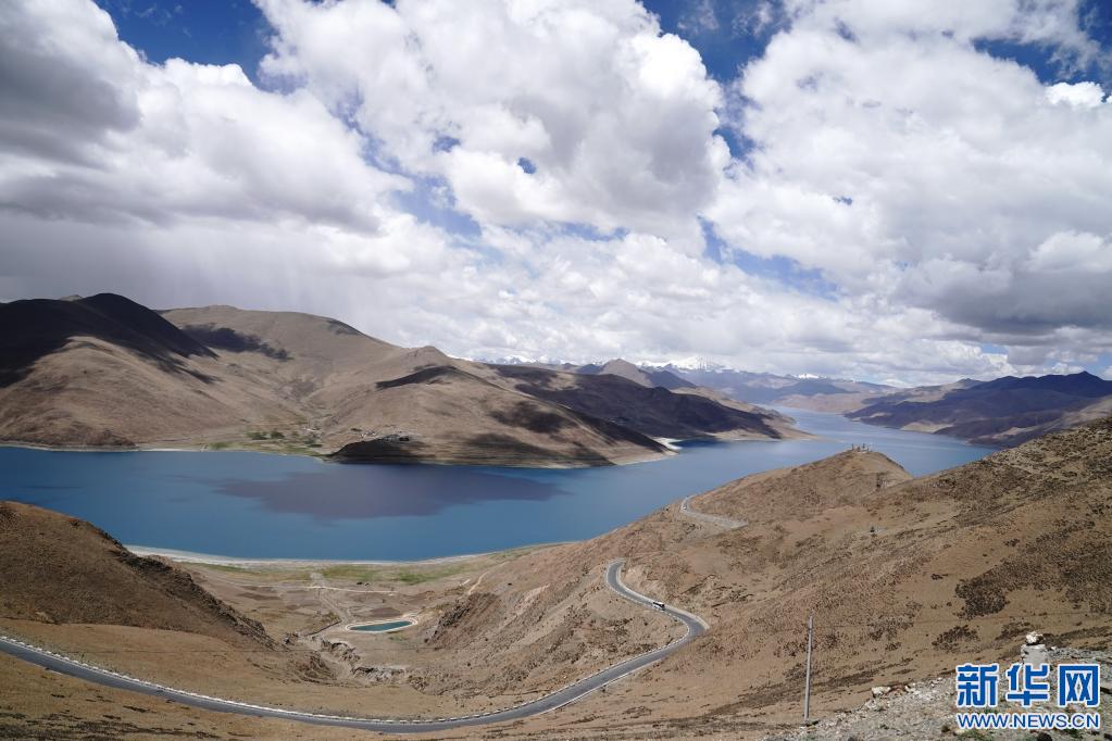 地處山南市浪卡子縣境內349國道邊的羊湖風景區(2021年6月6日攝)。新華社記者 劉洪明 攝