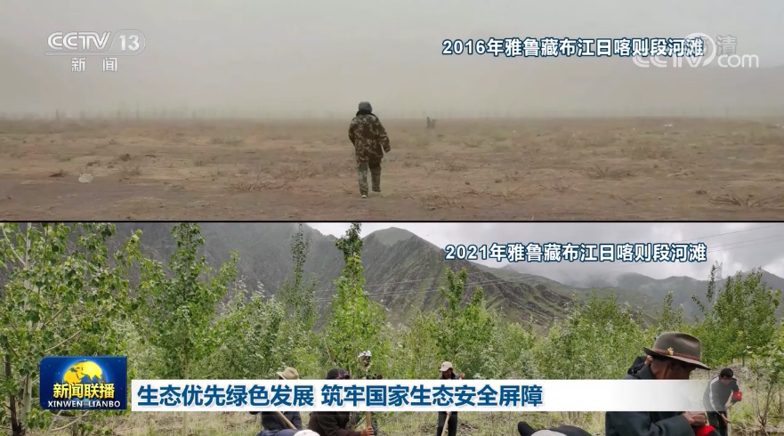 雅魯藏布江是我國最長的高原河流,也被譽為西藏人民的“母親河”。而受到高原氣候、地質等環境影響,雅江流域曾出現過河灘荒漠化的情況。眼前這兩張照片拍攝于雅江上游河灘的同一位置,五年的時間,荒漠變成森林,讓拍攝者次仁歐珠感慨不已。