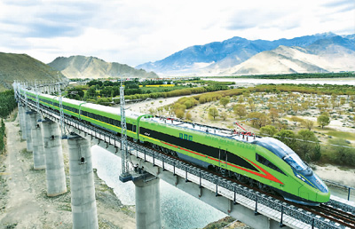 復興號列車行駛在西藏山南市境內。新華社記者 覺 果攝
