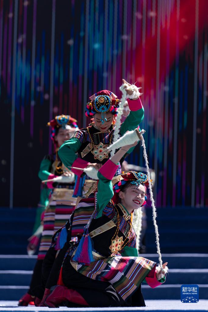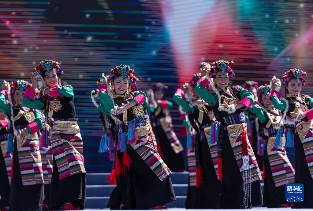 9月13日,來自安徽和西藏的演員在2021雅礱文化旅游節開幕式上表演。新華社記者 孫瑞博 攝