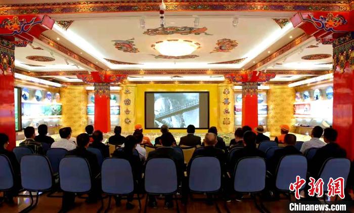 圖為參觀者在西藏自治區“兩路”精神紀念館觀看“兩路”宣傳片。西藏自治區交通運輸廳供圖