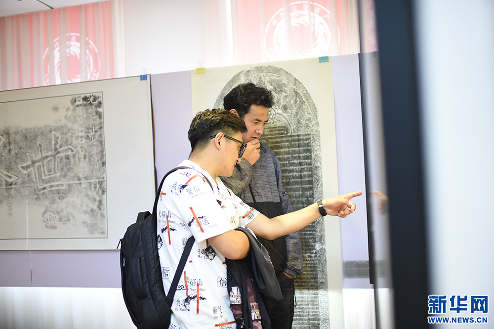 9月29日,在西藏大學新校區圖書館,參觀者觀賞石碑拓片內容。新華網 旦增努布 攝