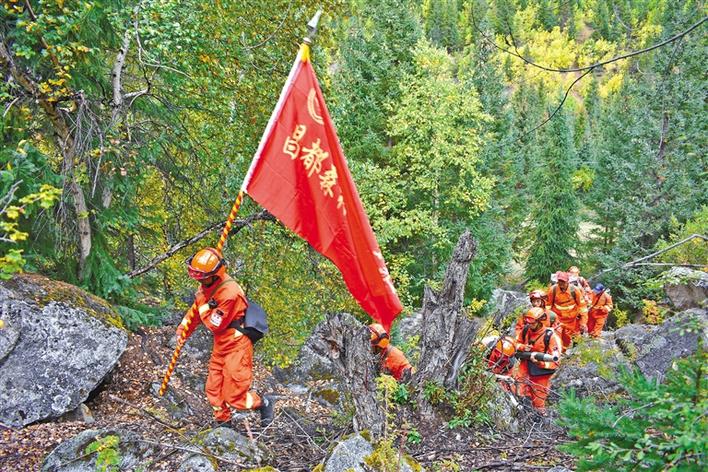 昌都市森林消防支隊(duì)在林區(qū)巡護(hù)。記者 楊小娟 攝