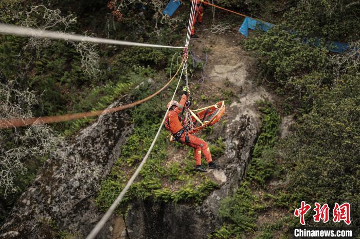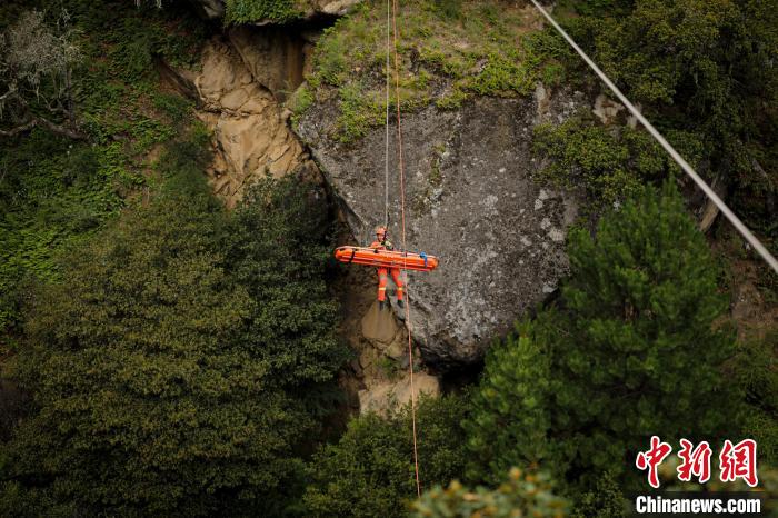 據(jù)悉,垂直崖壁救援是山岳事故救援行動中最難、最危險的科目之一,要求救援隊員在陡峭的崖壁上,尋找保護點、清理崖壁、建立保護站,利用繩索技術(shù),采用垂直提拉系統(tǒng)對墜落谷底的被困人員實施營救。
