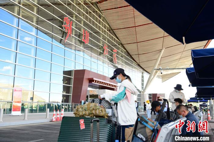 圖為8月11日,拉薩貢嘎機(jī)場航站樓外的旅客。 貢嘎來松 攝