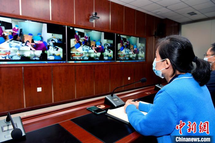 圖為西藏自治區(qū)第三人民醫(yī)院醫(yī)生在遠(yuǎn)程中心開展查房工作。 李林 攝