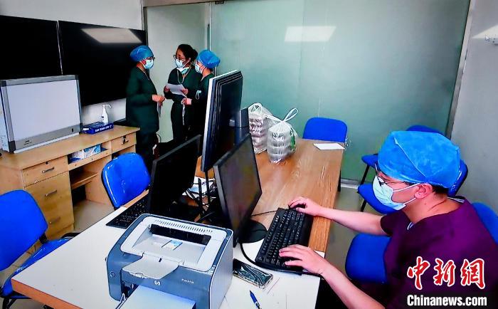 圖為監(jiān)控視頻中,西藏自治區(qū)第三人民醫(yī)院醫(yī)生在病房區(qū)辦公。 李林 攝