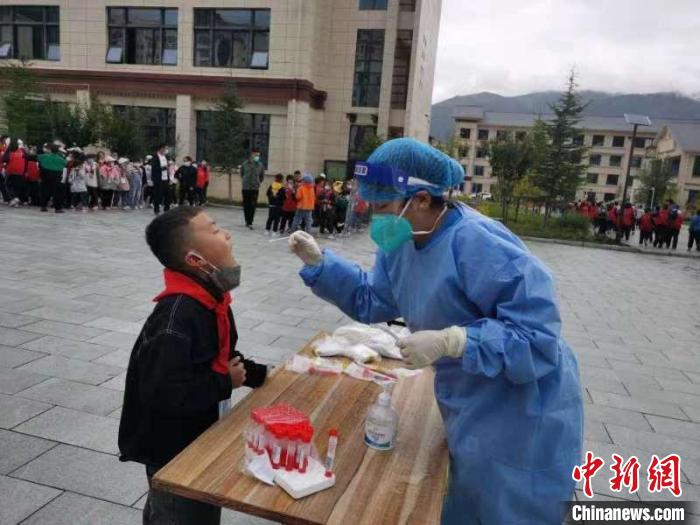 圖為林芝一小學(xué),開(kāi)學(xué)當(dāng)天學(xué)生接受核酸檢測(cè)。林芝市教育局供圖