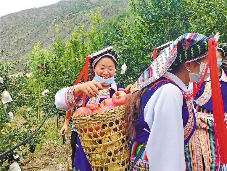 9月22日,林芝市察隅縣察瓦龍鄉松塔村怒族群眾正在采摘軟籽石榴。馬傳秋 攝