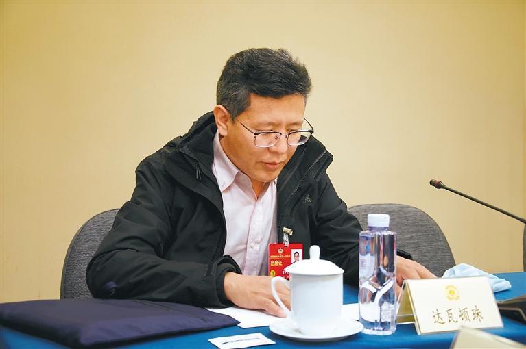 圖為達瓦頓珠參加農業界小組討論。 記者 旦增蘭澤 攝