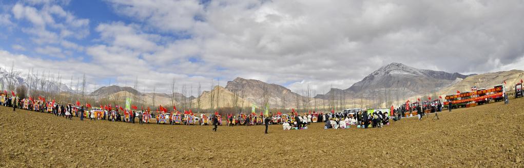參加春耕儀式的西藏林周縣強嘎村村民(3月16日攝)。新華社記者 晉美多吉 攝