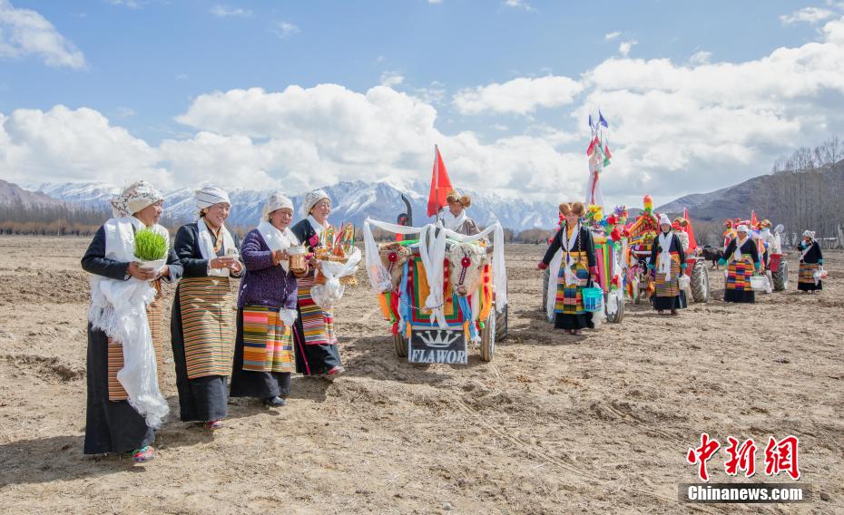 圖為拉薩市林周縣朱加村,村民穿著節日盛裝舉行傳統春耕儀式。林周融媒 供圖