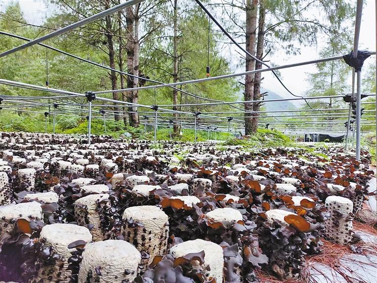 圖為格當鄉布龍村林下種植場種植的黑木耳。郎玲 王敏 攝