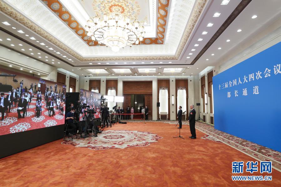 3月8日,第十三屆全國人民代表大會第四次會議舉行第二場“代表通道”采訪活動。這是記者在分會場通過網絡視頻方式采訪。新華社記者 陳曄華 攝